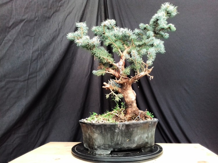 This Blue Picea bought on spring of 2015. The first repotting took place on 2015, all the old nursery soil was removed. The foliage was reduced on 2016, It is estimate that an amount of 50% of the old foliage was removed.