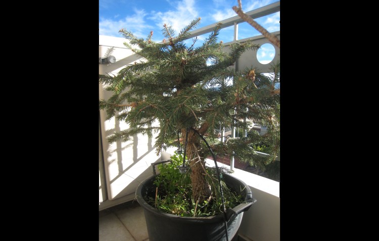 This Blue Picea bought on spring of 2016. All the old nursery soil was removed, the root system was reduced by 30%.