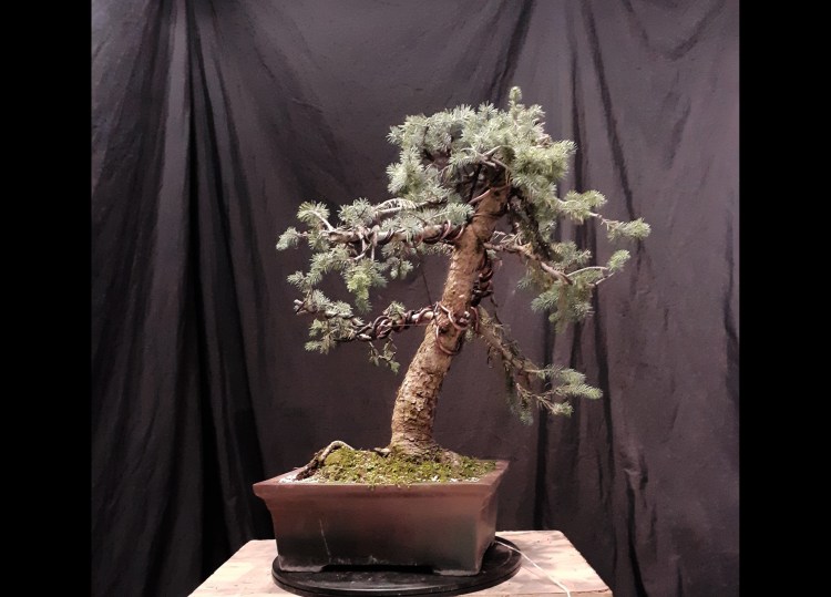 During 2019 the tree was repotted to bonsai pot, the root system was reduced by 30%, the angle of the tree was changed.