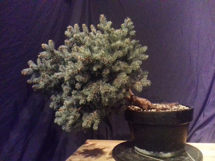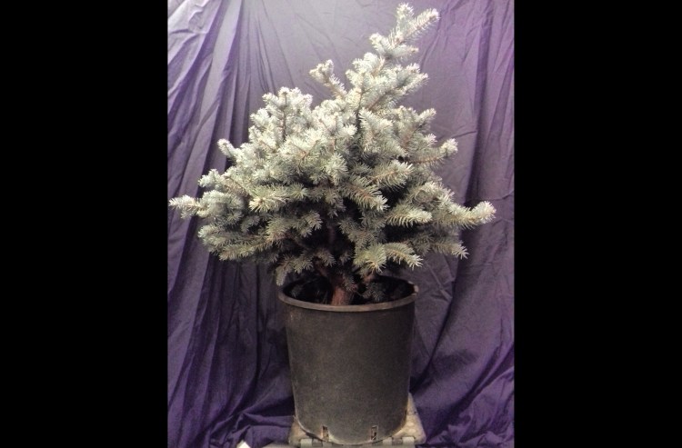 This Blue Picea bought on spring of 2018, it was a typical nursery Picea tree with a round shape and a lot of foliage.